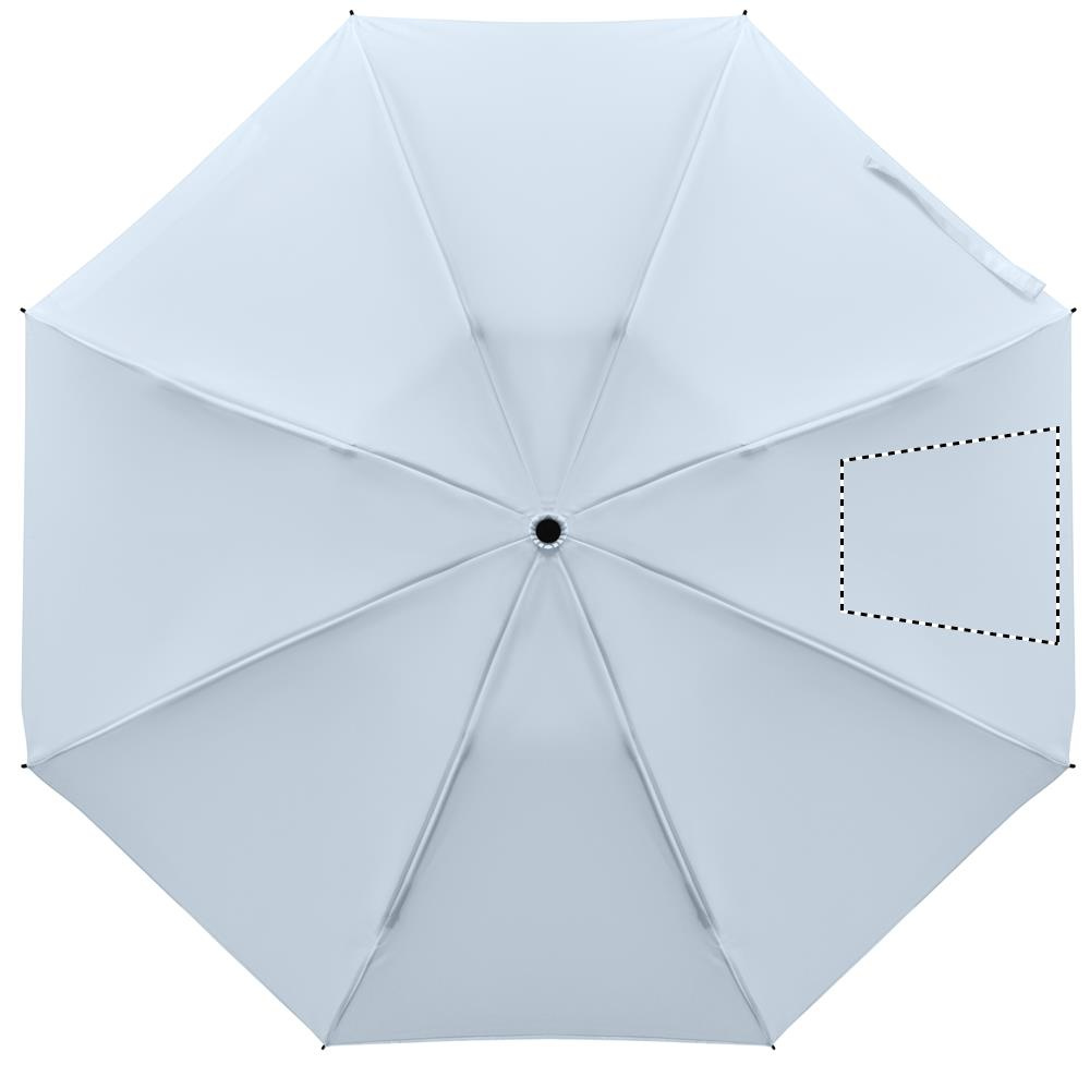 23'' Windproof Regenschirm aus 190T RPET Pongee. 3-fach faltbar. Schwarz beschichtetes Gestell, Stangen aus Fiberglas, gummierter ABS-Griff. Inkl. passende Hülle. Automatische Öffnung und Schließung.