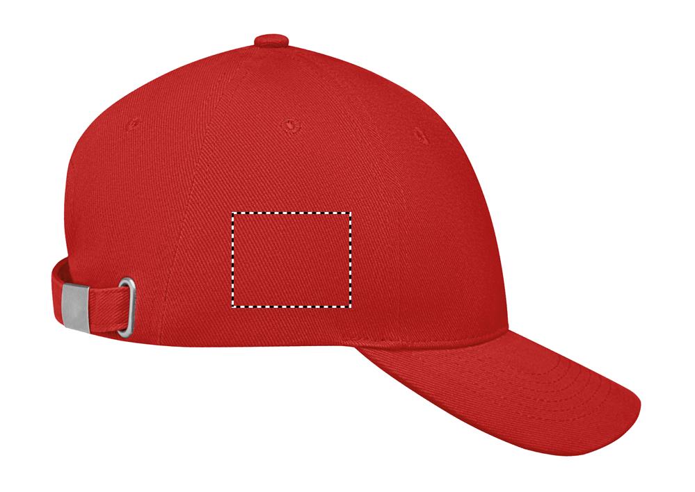 Baseball Kappe. 5 Panels. Silberne Schnalle aus Stahl. 4 farblich abgestimmte, umstickte Belüftungslöcher. Heavy Brushed Twill Baumwolle 260 g/m². Größe 7 1/4.