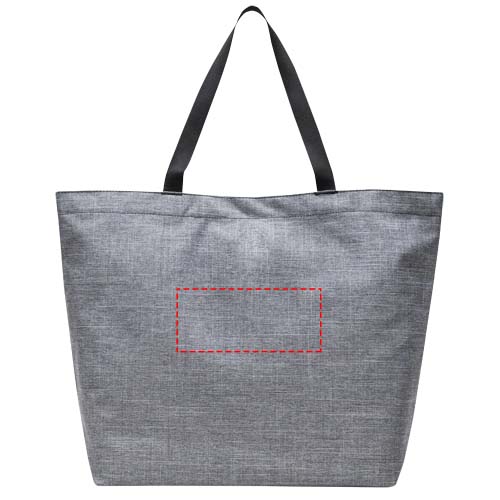 Schlichtes Design, recycelte Materialien – dieser Alltagsheld ist eine Tragetasche, die alles mitmacht. Die Tasche besteht aus EcoSystem™ 600D-Gewebe und Innenfutter, beides aus 100 % recycelten Wasserflaschen. Die Tragetasche hat einen Schnappverschluss aus Metall und glatte Tragegriffe aus Gurtband für optimalen Tragekomfort.