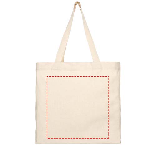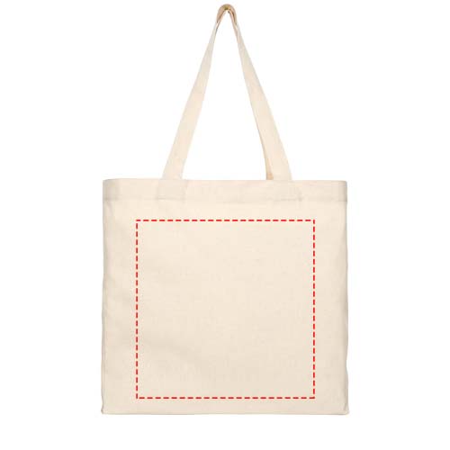 Tragetasche aus 210 g/m² recycelter Baumwolle und recyceltem Polyester. Recycelte Baumwolle wird aus Verbrauchsabfällen hergestellt, die während des Schneidevorgangs in Textilfabriken anfallen. Tragetasche mit Zwickel und großem Hauptfach. Ausgestattet mit zwei Griffen mit einer Höhe von 31 cm. Tragekraft bis zu 10 kg Gewicht. Aufgrund des Produktionsprozesses kann es zu geringfügigen Farbabweichungen des Produktes kommen.