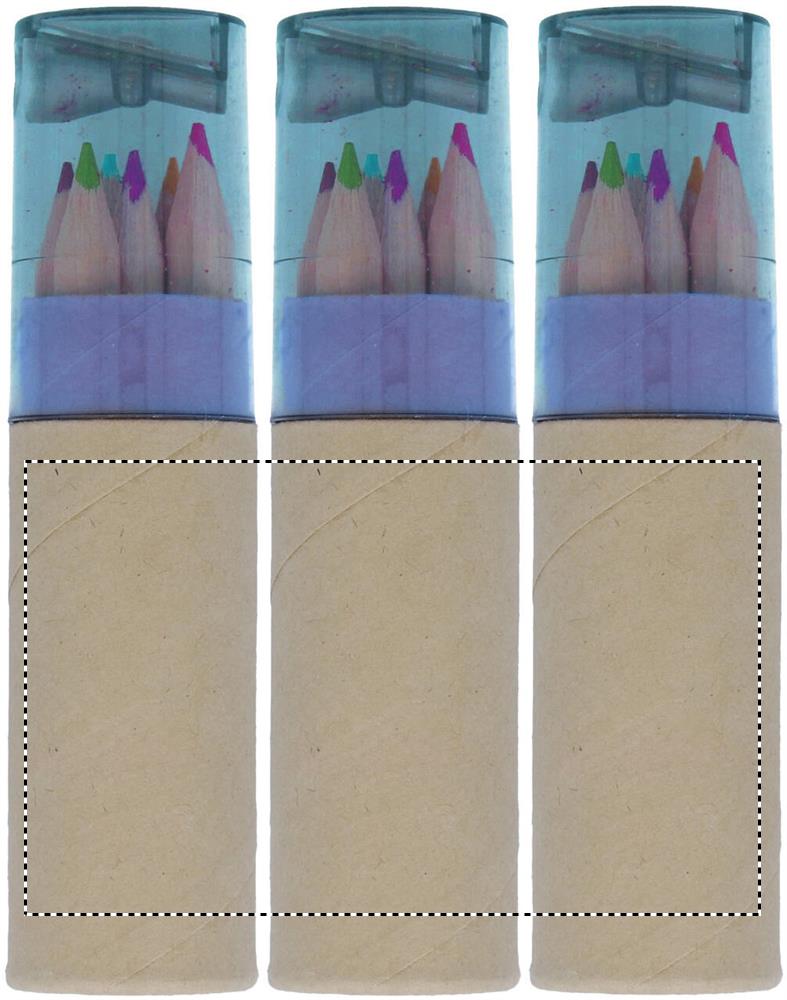 6 piece colouring pencils in tube. Pencil sharpener transparent lid.