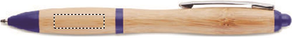 Push button ball pen with bamboo barrel and ABS fittings. Blue ink. Bamboo is a natural product, there may be slight variations in colour and size per item, which can affect the final decoration outcome.
