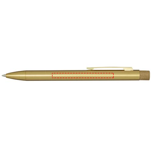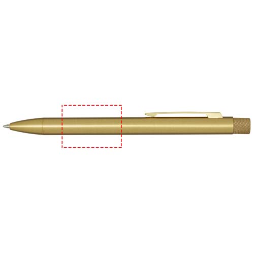 Ballpoint pen with a coloured spray coating. The button and tip are made of brass, the barrel is made of recycled brass, and the clip is made of iron. Ink colour: Blue. Writing length: 1000 metres. Nib size: 1.0 mm. Delivered in a gift box.