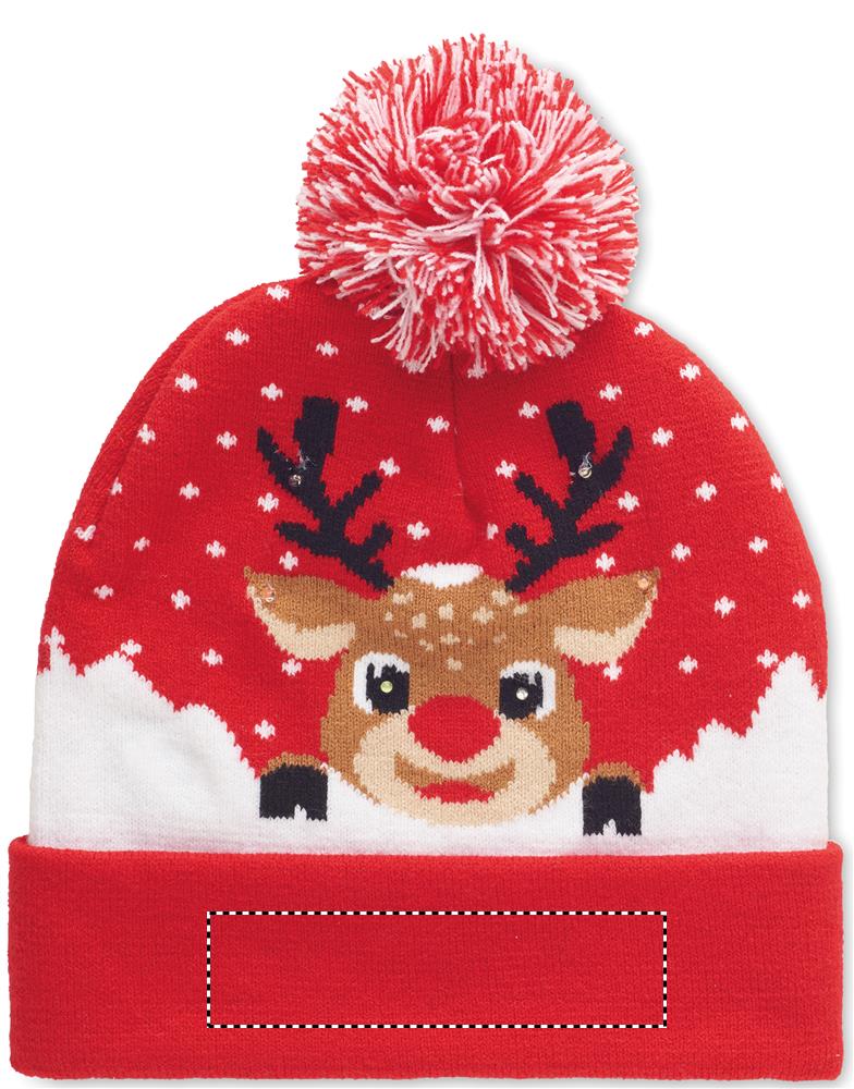 Christmas knitted beanie with 6 LED light (3 setting lights) with cuff and bobble in soft stretchable acrylic. 1 CR2032 battery included.