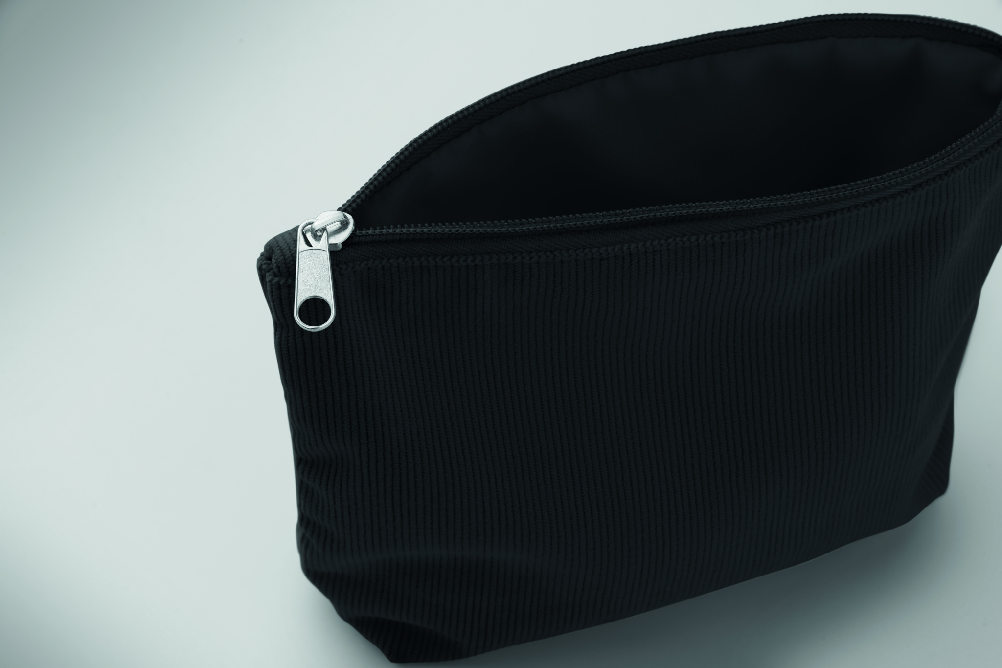 Cosmetic bag in polyester corduroy with polyester lining. 220 gr/m².