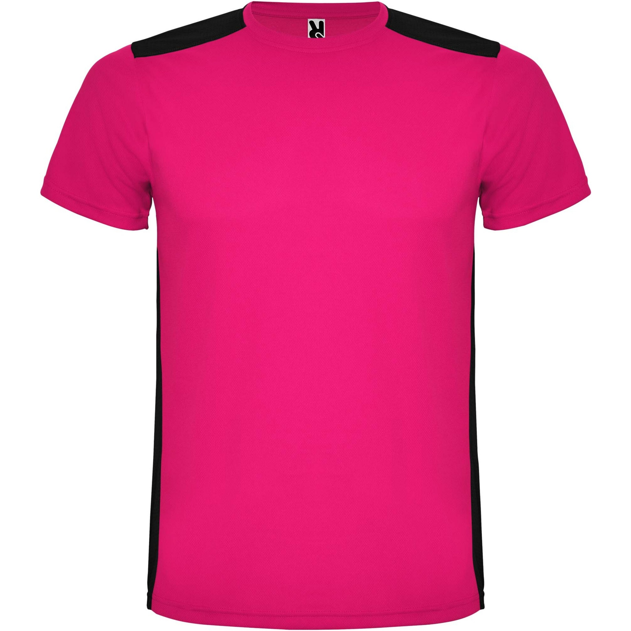 Easy-dry, technical and breathable fabric. Crew neck. Combination of two polyester fabrics on the back and shoulders. Bird's eye fabric on front and breathable 3D mesh fabric at the back. Fabric prepared for moisture absorption. Decorative zigzag backstitch on sides and shoulders. Back pattern slightly longer. Removable label.