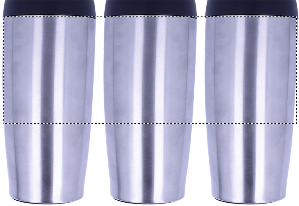 Double wall stainless steel travel cup with securable PP lid that has a push function and it is leak free. Capacity: 350 ml. Leak free.