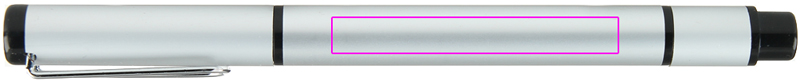 Aluminum ballpoint pen with black-writing refill and yellow highlighter on the opposite side. We engrave your logo on the shaft.