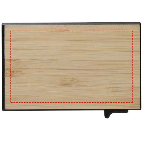 The Minka gift set includes a ballpoint pen made from RCS certified recycled aluminium with a stylish bamboo grip and stylus tip, an aluminium keychain (5.5 × 1.8 × 1 cm) with bamboo details and an integrated phone holder, and an RFID card holder (9.7 × 6.2 × 1 cm) with an aluminium alloy body and bamboo details, providing protection for up to 10 cards. The pen contains black ink with a writing length of 1000 metres. A thoughtful and practical gift that combines functionality with modern design. Supplied in a premium black gift box (16 × 16 × 2.7 cm) with a plain front, ideal for adding a logo.
