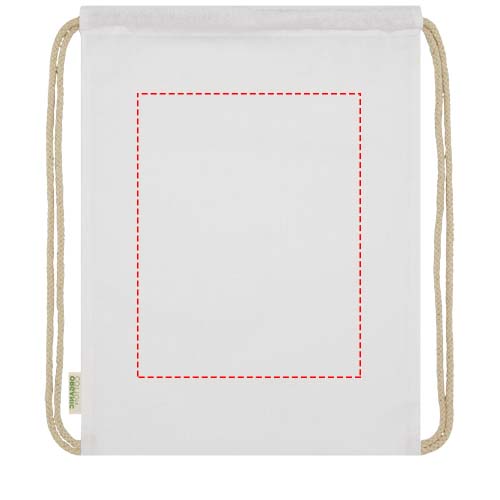 Drawstring bag made from 100% OCS certified 140 g/m² organic cotton originating from India. The bag features a large main compartment and a cotton drawstring closure to keep all belongings safe and secure. Resistance up to 5 kg weight. Volume capacity: 5 litres.
