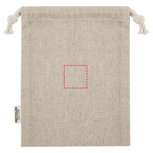 Gift bag made of GRS certified recycled cotton with cotton drawstring closure. Ideal for gifting or storing items. Size: 15 x 20 cm. There may be minor variations in the colour of the actual product due to the nature of the production process.