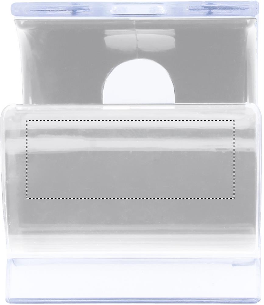 Mobile phone stand in plastic covered by transparent plastic layer.