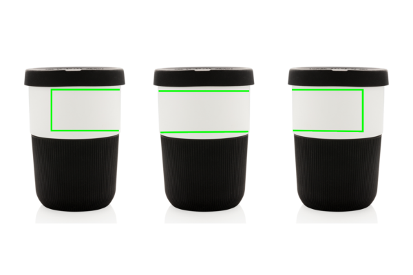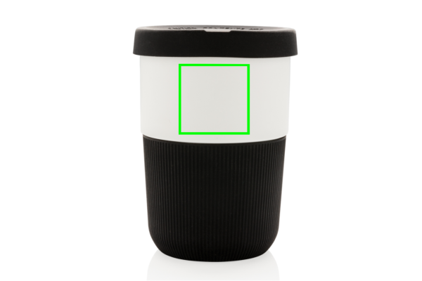 A sustainable alternative to traditional cups! Bringing style and practicality to your morning commute, this PLA coffee cup is ideal for transporting your favourite hot beverage. Manufactured from plant material (PLA), so not only stylish but also kind for the planet. Comes with a silicone grip and lid for your convenience. 100% melamine free. Capacity 380ml.