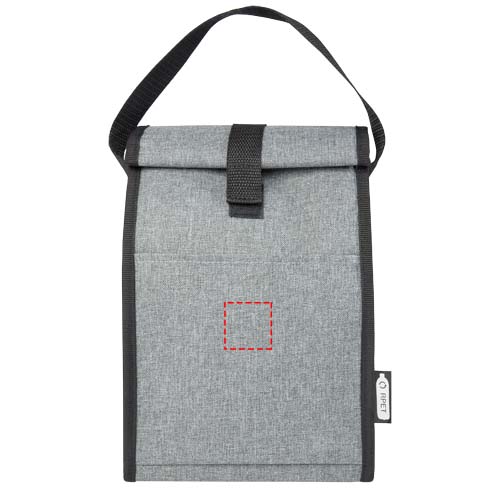 The Reclaim 4-can cooler bag features an exterior made from 100% GRS certified recycled PET plastic, making it a sustainable choice. Features a fold-over closure and a grab handle for easy carrying.