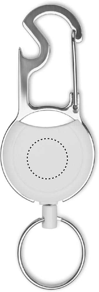 Retractable badge holder in ABS with clip, key ring and bottle opener.
