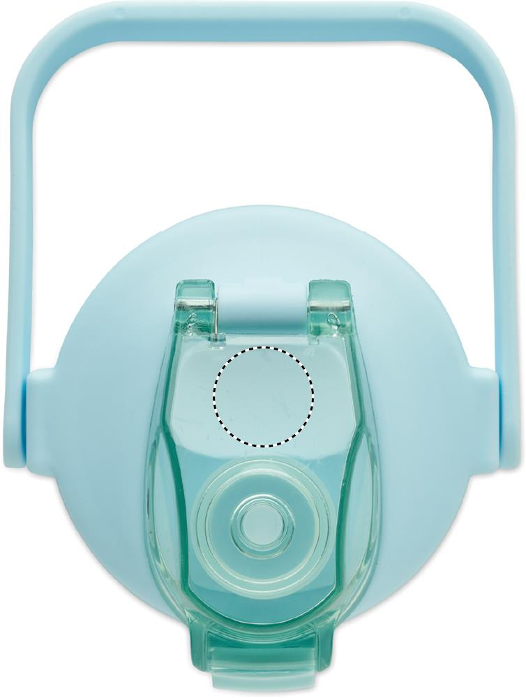 Motivational water bottle in RPET. Features a one-hand open flip-top lid with straw, safety lock, and handle. Leak-free. Capacity : 2000 ml