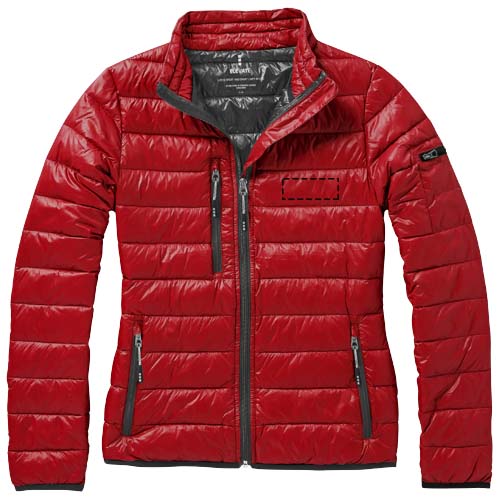 The Scotia women's lightweight down jacket – the ultimate fusion of style and comfort. This jacket features elasticated binding on the bottom and sleeves, offering a comfortable and slightly tight fit that adds protection against chilly winds. The outer shell fabric is made of nylon dull cire 20D woven with a water-repellent finish, ensuring exceptional durability and good protection against the elements. The lightweight material allows for easy movement and effortless wear throughout the day. The downproof pressed fabric prevents the down and feathers from escaping, ensuring long-lasting warmth and an extra level of durability. The down insulation is RDS certified (Responsible Down Standard), consisting of down and feathers, providing lightweight warmth without compromising ethical standards. A reliable companion for any outdoor adventure. This jacket is designed with a fitted shape for a feminine look.