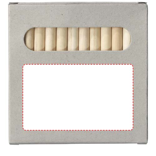 12 coloured pencils inside a paper box.. Decoration not available on components.