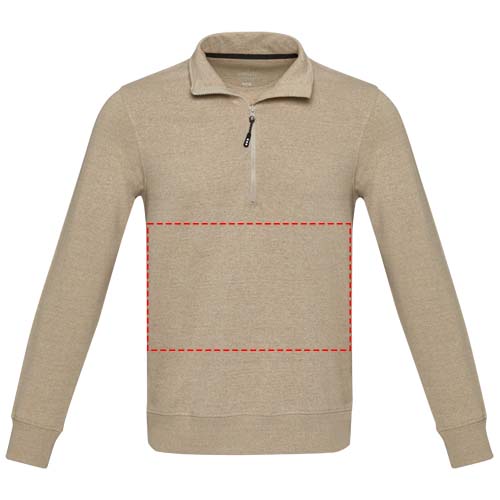 The Tin unisex Aware™ quarter zip sweater is made from 50% organic cotton and 50% recycled cotton. The functional quarter-zip design adds versatility and convenience, allowing you to easily layer the sweater and adjust comfort. The sweater incorporates Cyclo® recycled fibres where they use pre-sorted waste that determines the colour of the yarn. These fibres do not only reduce the demand for virgin resources but also exhibit a commitment to a circular life, embodying the essence of reducing waste and promoting a closed-loop system. Each sweater also comes with an Aware™ tracer. This innovative feature allows users to trace the origins and journey of their item through a QR code, enhancing transparency in the supply chain and fostering a stronger connection between the product and its production process.
