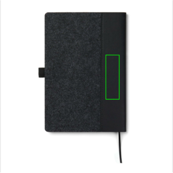 A5 notebook elegantly crafted from recycled felt, boasting a mélange effect and an integrated pen holder. Containing 80 sheets or 160 pages of 70 gsm recycled paper, its lined pages are ideal for any note-taking needs. Certified by GRS (Global Recycled Standard), GRS certification guarantees that the entire supply chain of the recycled materials is certified. The total recycled content is based on the overall product weight. This product contains 83% GRS-certified recycled paper and 7% GRS-certified recycled felt.