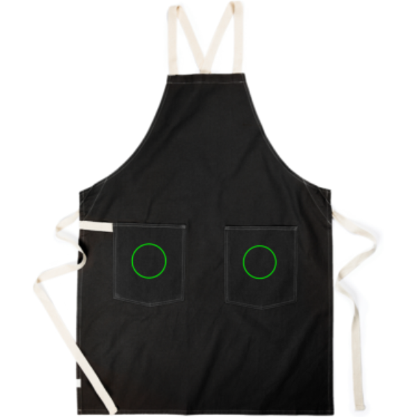 Apron made from 70% certified recycled cotton from suppliers' cotton waste. Fibres that are usually considered unusable have, with the appropriate manufacturing process, achieved the desired properties. This apron is extra wide to provide maximum protection. Two large front pockets and a loop for hanging utensils or a tea towel.