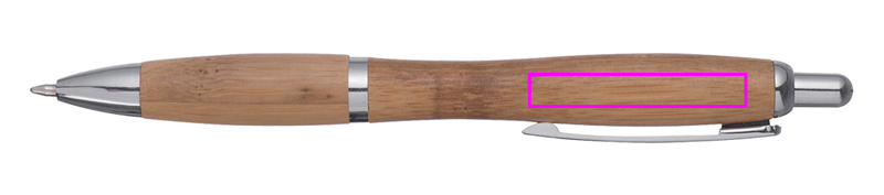 Bamboo ballpen with blue-writing refill. We engrave your logo below the clip.