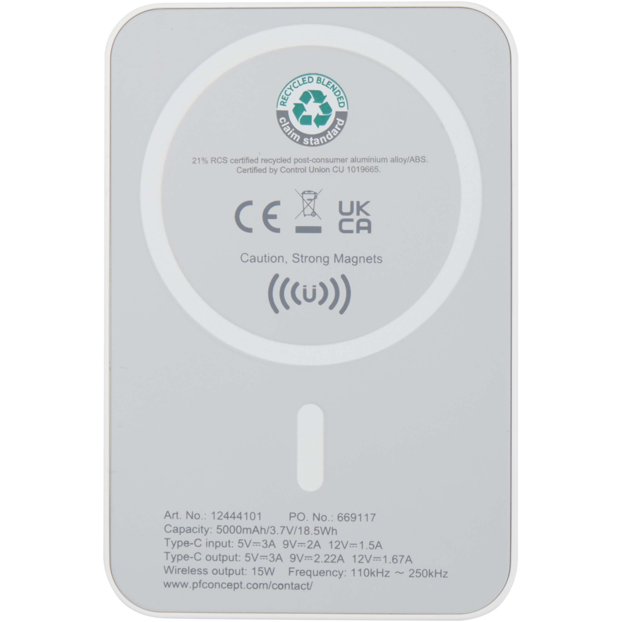 Logo trade reklaamtoote pilt: Acrab 5000 mAh 15W magnetiline juhtmevaba varupatarei koos 20W PD-ga - valmistatud taaskasutatud plastist