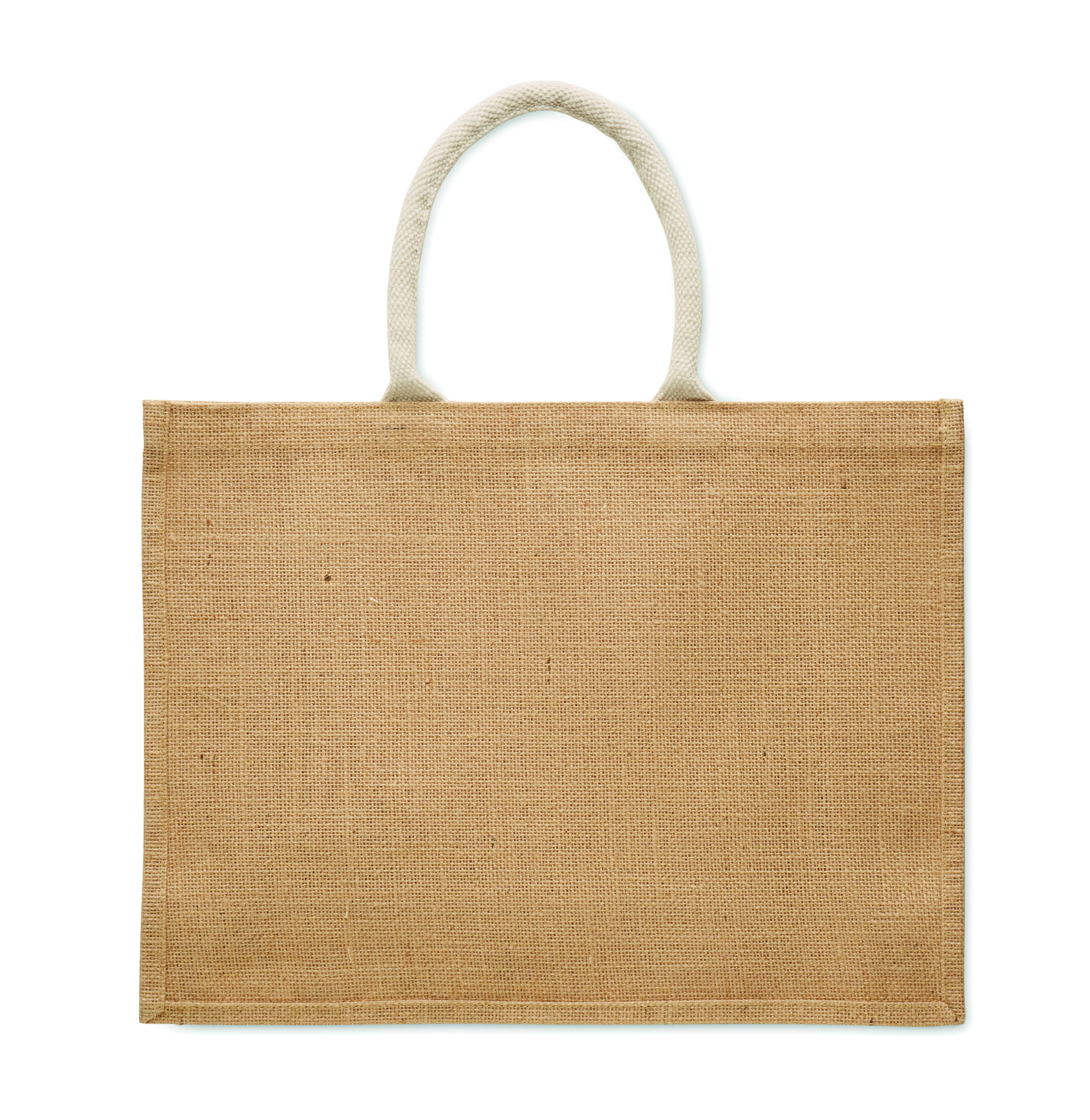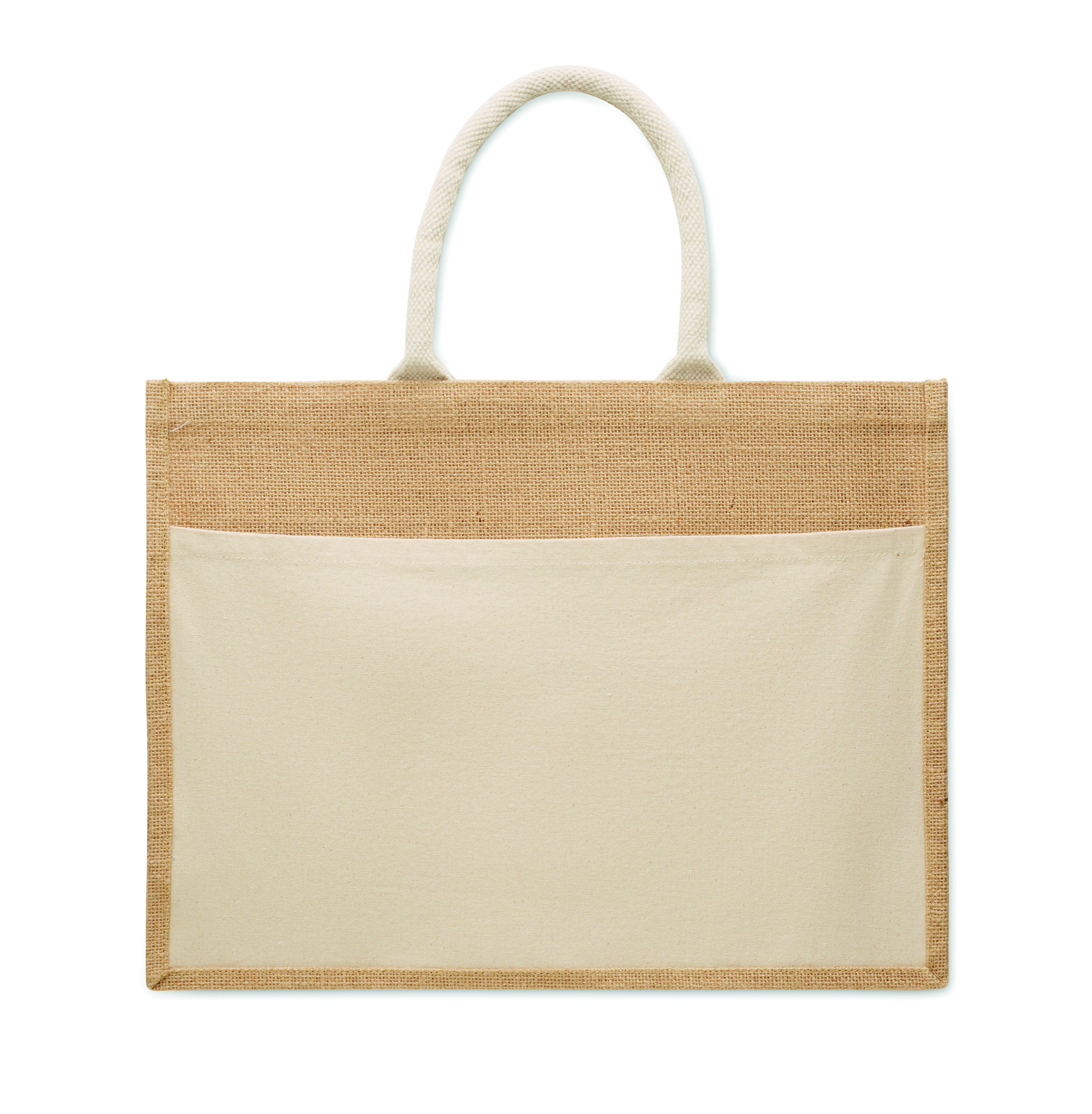 Lamineeritud džuudist ja 280 g/m² puuvillasest purjeriidest ostukott nöörsangadega. Sisaldab suurt avatud esitaskut.