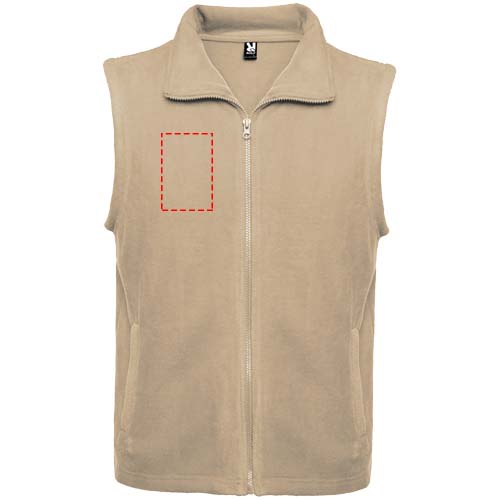 Polo kaelusega fliisvest ja sobiva lukuga. Sobiva lukuga küljetaskud. Eemaldatav etikett. Modell on 185 cm pikk ja kannab suurust M.