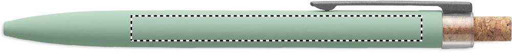 Taaskasutatud alumiiniumist valmistatud pastapliiats korgist nupu ja metallklambriga. Sinise tindiga.