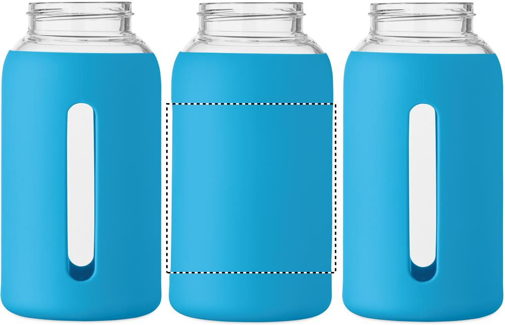 Kõrgborosiilikaatklaasist pudel silikoonümbrise ja PP-kaanega käepidemega. Mahutavus: 600 ml
