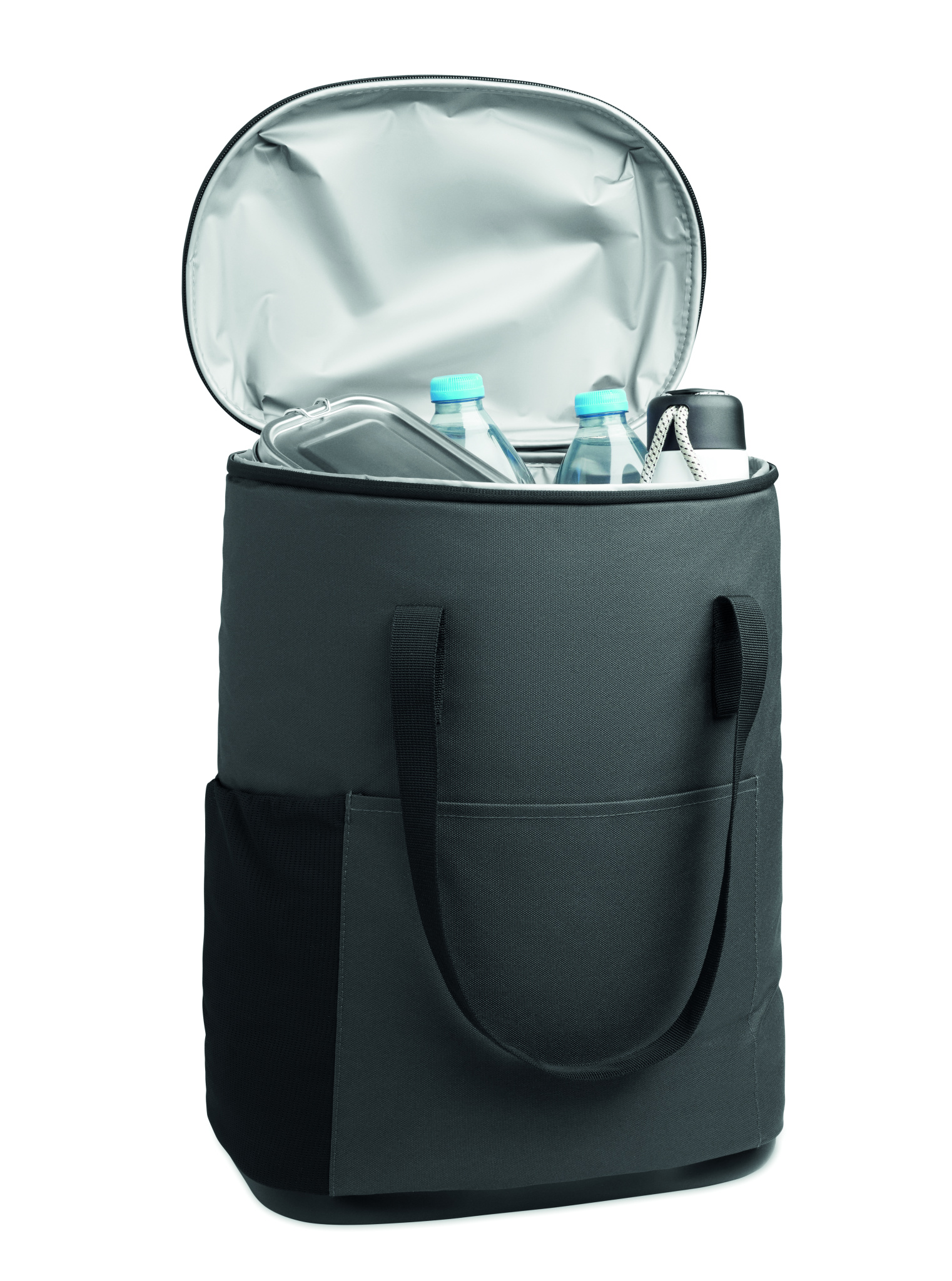 Vetthülgavast 600D RPET materjalist, PE-vahtisolatsiooni ja PEVA voodriga külmakott. Polsterdatud võrkkangast seljaosa, eesmise lukuga tasku ja külgedel asuvate võrkkangast taskutega. Mahutavus 20 l.