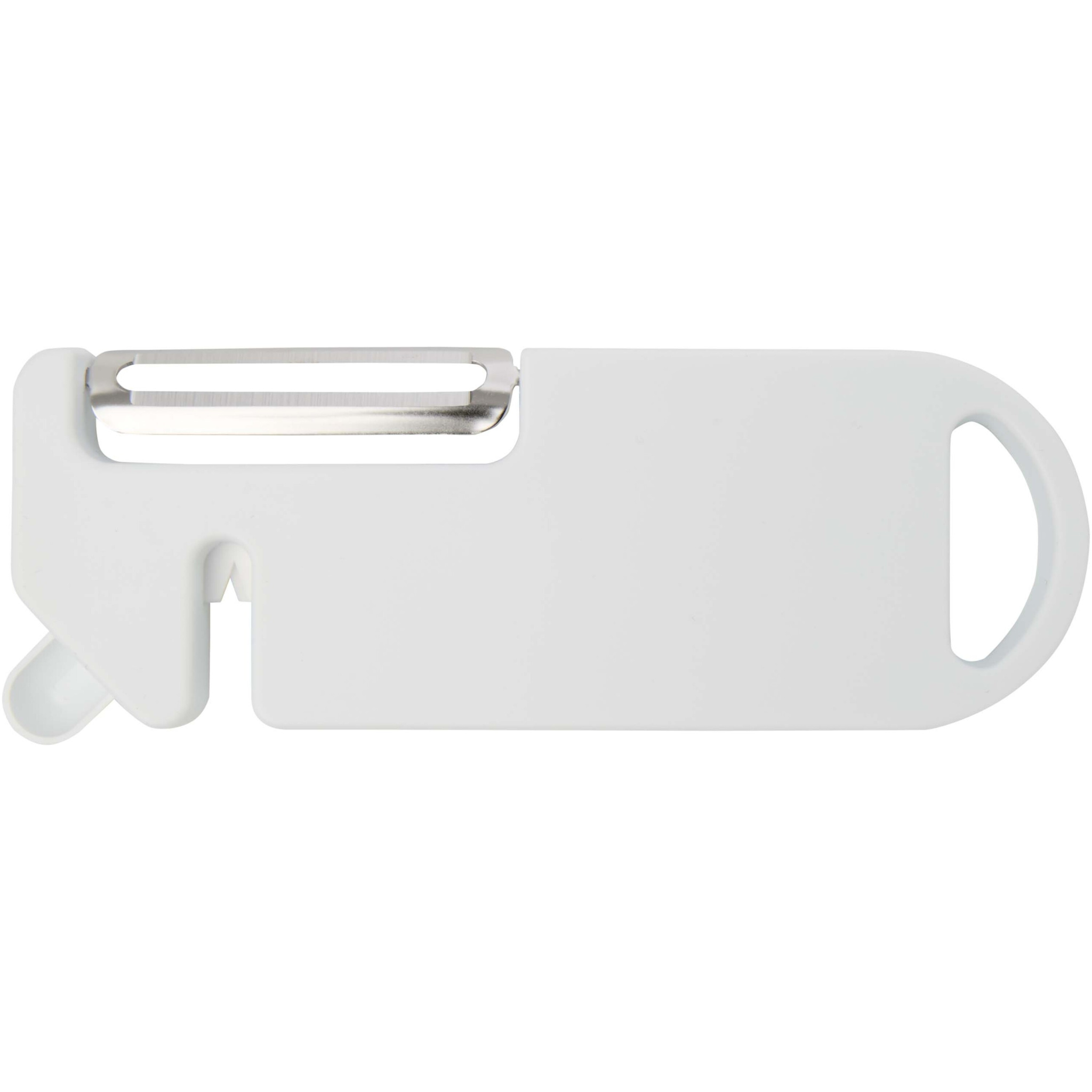 See mitmeotstarbeline köögiriist ühendab endas neli olulist funktsiooni ühes kompaktses disainis. Taaskasutatud plastist valmistatud tööriistal on koorija, pudeliavaja, noateritaja ja terav ots kartuliplekkide eemaldamiseks.