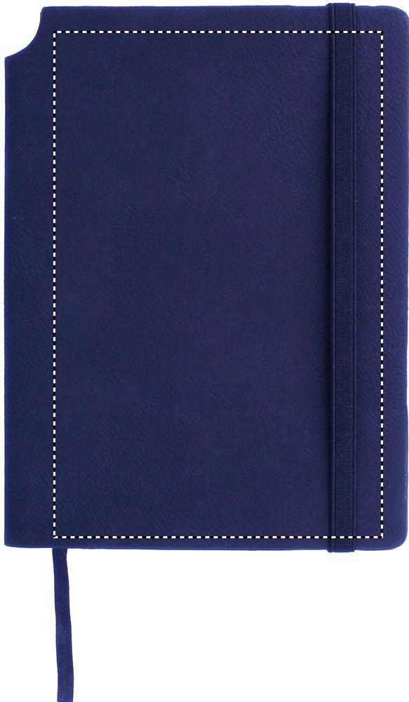 Pehme PU kaanega A5 märkmik. Casebound. 160 joonelist lehte (80 lehte). Kokkusobiv elastne sulgemisrihm ja paelaga järjehoidja. Laiendatav sisetasku tagaosas. Pliiatsihoidja selgroos.