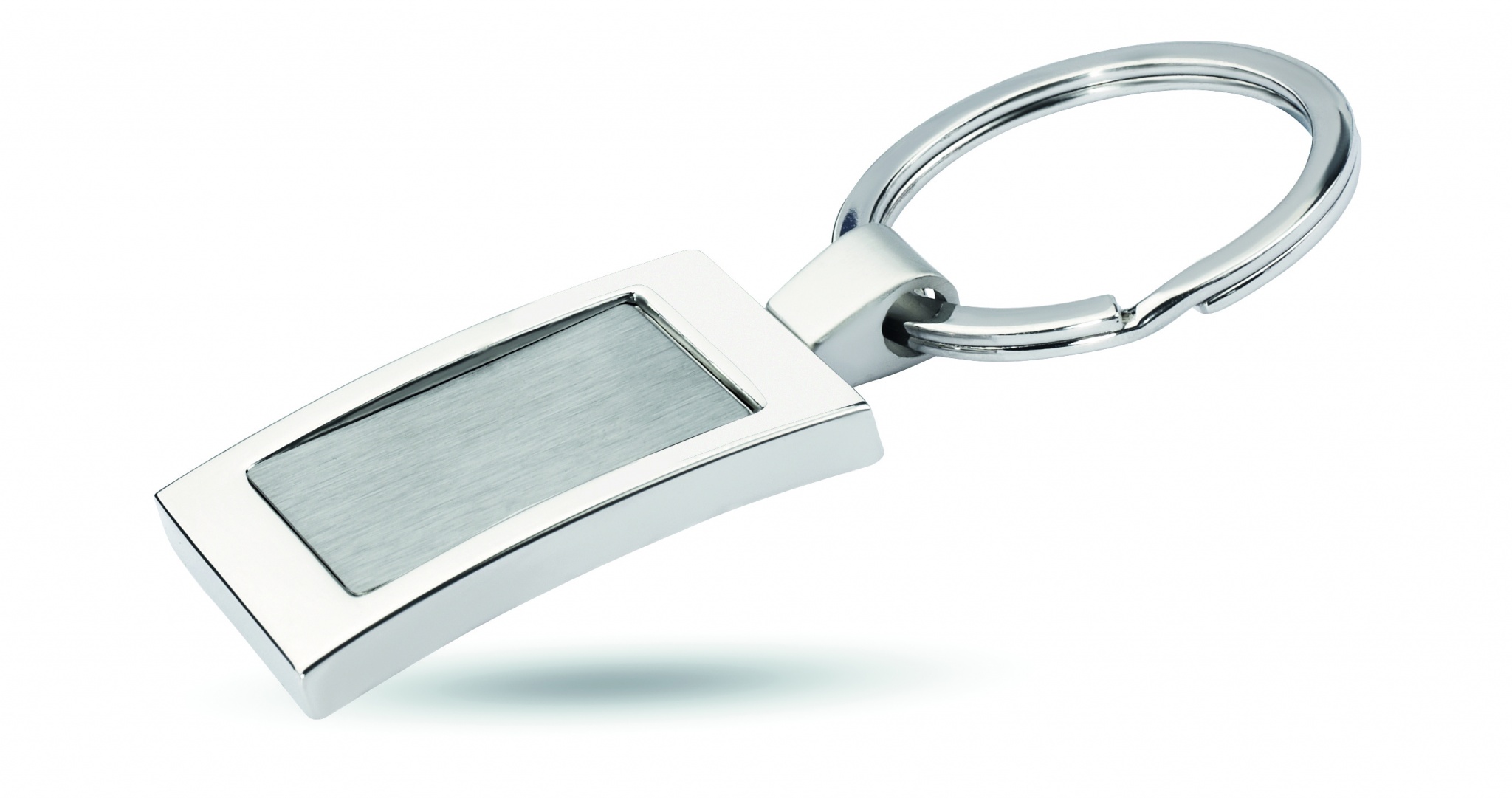 Metallist ristkülikukujuline võtmehoidja. Üksikult pakitud kinkekarpi.