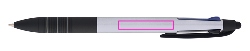 4in1 plastikust pastapliiats 3 erineva kirjutusvärviga (sinine, punane ja must) + puutefunktsioon ja kummeeritud haaretsoon. Trükime teie logo võllile.