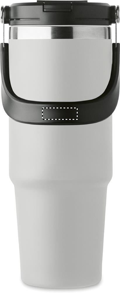 Kahekordse seinaga taaskasutatud roostevabast terasest (90% taaskasutatud roostevabast terasest ja 10% roostevabast terasest) trummel sisekõrrega kaanega, kokkupandav huulik ja otsene joogiava. Mahutavus 850 ml.