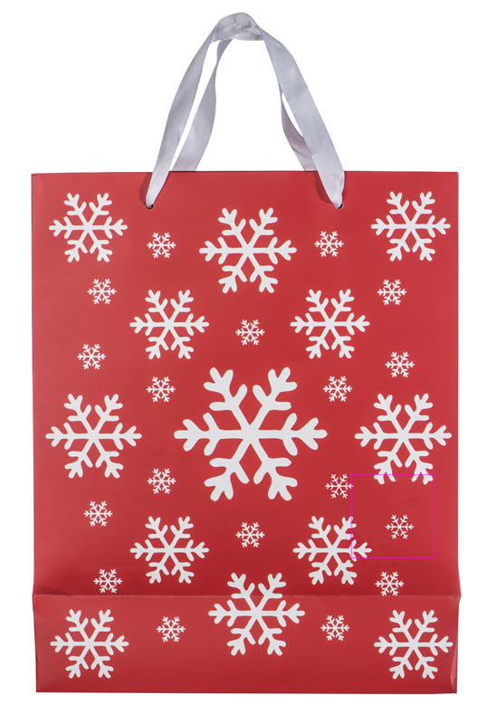 Suur lumehelbekujundusega ja kahe sangaga paberist jõulukinkekott. Trükime teie logo sildile.
