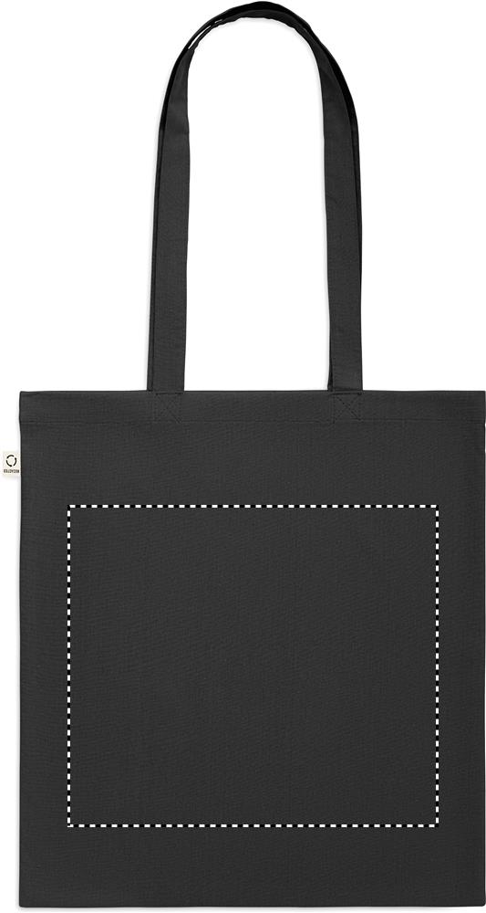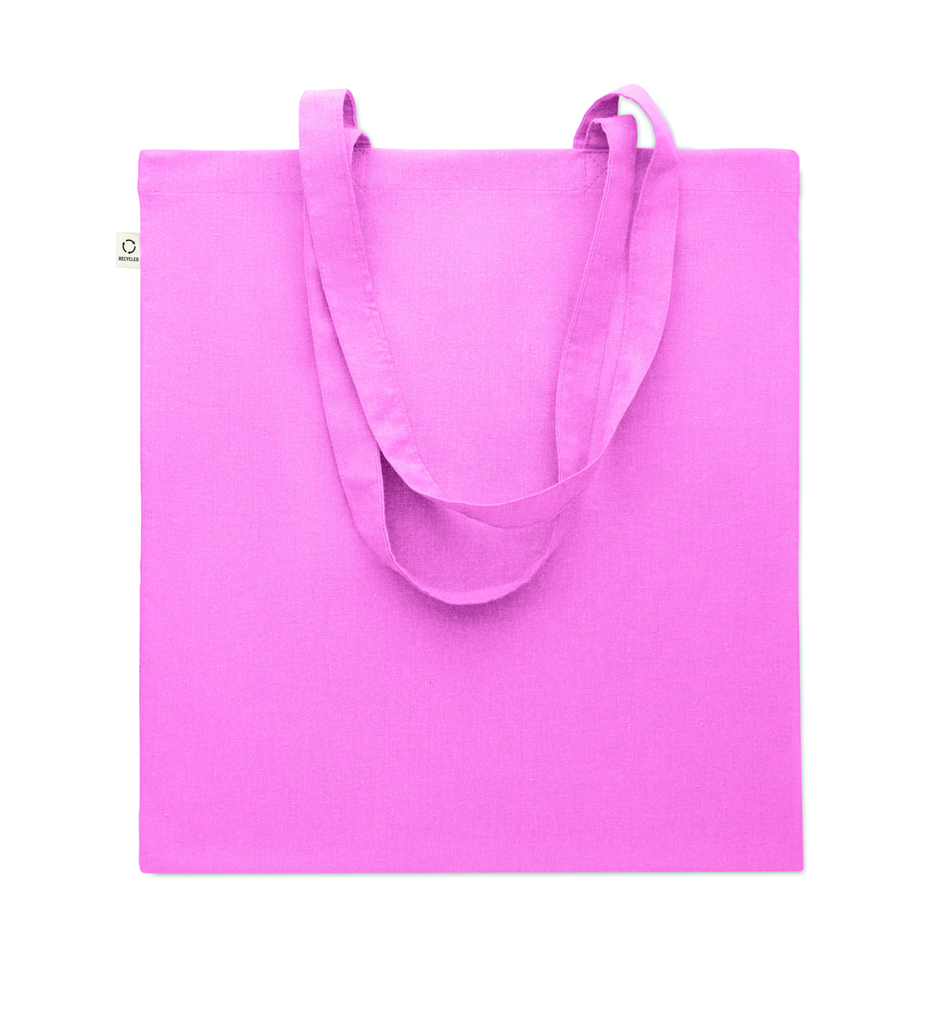 Tarbimiseelsest taaskasutatud puuvillasest ostukott (70% taaskasutatud puuvill ja 30% RPET) pikkade sangadega. 140 gr/m².