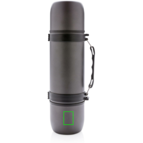 Elegantse disainiga roostevabast terasest kaheseinaline vaakumkolb käepideme ja õlarihmaga ning sisaldab kahte sobivat tassi optimaalse joogikogemuse tagamiseks. Lekkekindel ja ainult käsipesu. Sisu 700ml.