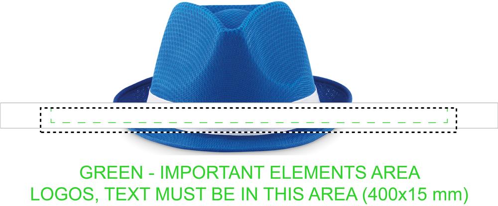Värviline müts polüesterõlest valge värvi ribaga. Trükkimata tellimuste puhul tarnitakse rihm kaupade külge kinnitamata