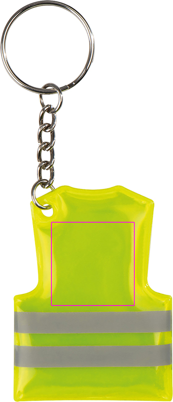 Helkurribadega turvavesti kujuline võtmehoidja. Trükime teie logo triipude kohale.