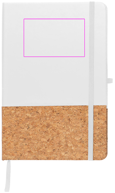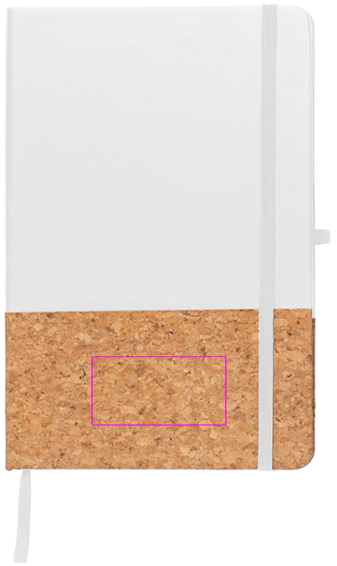 A5-kokoinen muistikirja, jossa 160 viirallista sivua ja PU-korkkikansi, kirjanmerkki, kuulakärkikynälenkki ja joustava kiinnitysnauha. Painamme logosi etupuolelle.