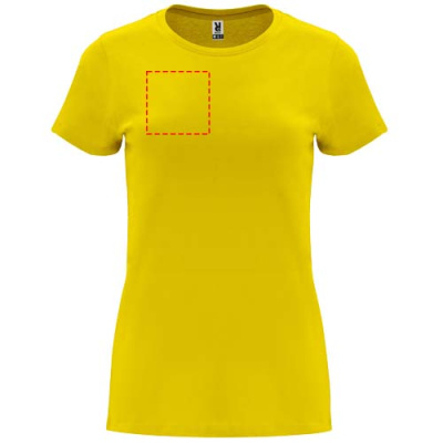 Lyhythihainen ja muotoiltu naisten t-paita. 1x1 resorikankainen pyöreä kaula-aukko. Vahvistettu sauma pääntiessä. Irrotettava tuotemerkki.