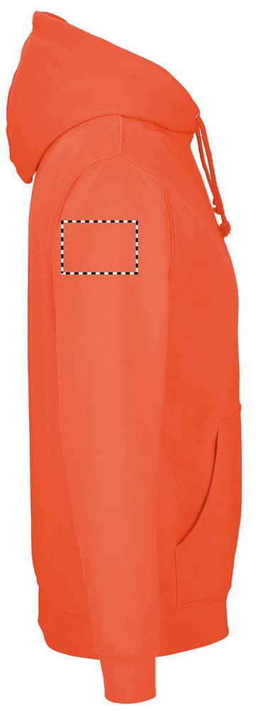 SOL'S CONDOR, Unisex hupullinen huppari, 80 % puuvillaa - 20 % kierrätettyä polyesteriä Grs sertifioitu. Harjattu fleece 280 Set-In hihat, 1X1 Ribbed hihansuut, kaulus ja helma. Kengurutasku, vuorattu huppu, jossa sävy sävyyn kiristysnauha ja metalliset silmukat. Tietoja kokojen yhteensovittamisesta, katso kokotaulukko tuotteen dokumentointiosassa.
