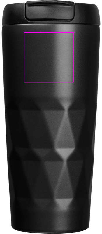 Kaksiseinäinen jalo ruostumattomasta teräksestä valmistettu muki, jonka tilavuus on 500 ml; mikä tärkeintä, tiivis. Logosi kaiverretaan.