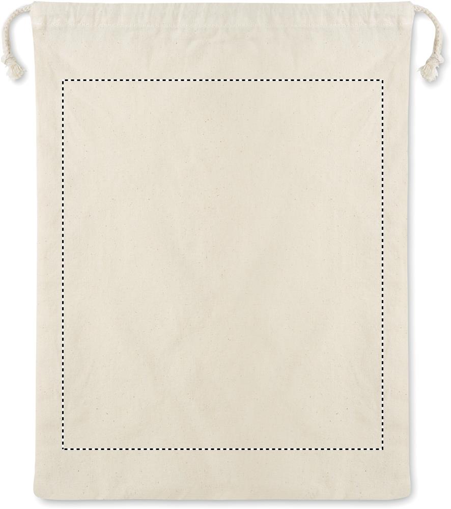 Uudelleen käytettävä hedelmäpussi, tuote on valmistettu 140gr/m² puuvillasta ja 110gr/m² puuvilla verkosta, nyöri kiinnityksellä.