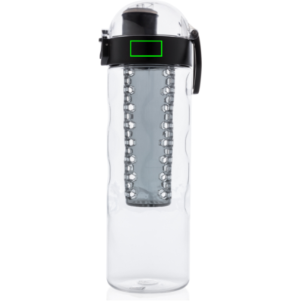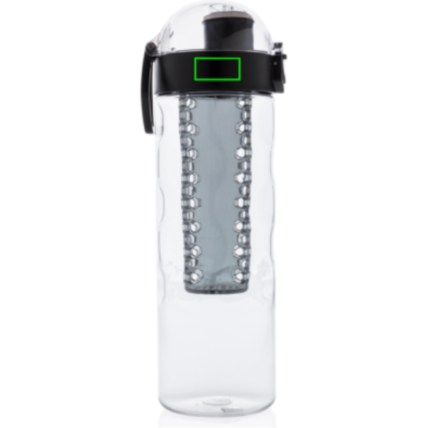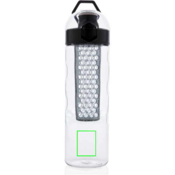 Lisää terveellisiä hedelmän makuja veteesi. Tämä hunajakenno-yksityiskohdilla varustettu pullo mahdollistaa kätevän yhden käden juomisen. Paina painiketta ja kansi aukeaa. Käytössä on erityinen lukitusmekanismi, jotta käyttäjät eivät vahingossa paina painiketta. Sisältää kantohihnan. Tämä infuusiopullo on valmistettu kestävästä ja innovatiivisesta tritanista. Hajuton ja 100% BPA-vapaa. Sisältö: 700ml. Rekisteröity design®