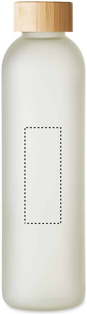 Lasinen juomapullo, jossa on erityinen pinnoite sublimaatiota varten sekä bambukorkki. Tilavuus 650 ml.