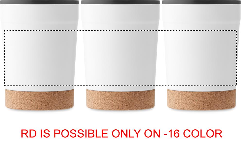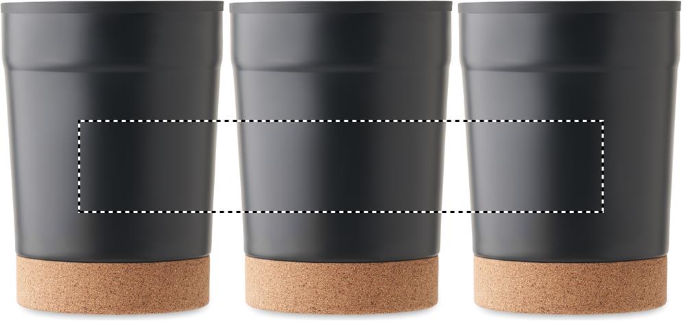 Kaksiseinäinen muki, jonka ulkokuori on tehty ruostumattomasta teräksestä ja sisäpinta PP:sta. Mukin pohja on korkkia ja kannessa on liukuva juoma-aukko. Vuotamaton. Tilavuus: 300 ml.